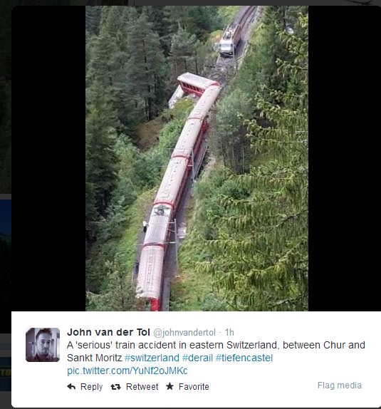 Το τρένο ξεκίνησε από την Κουρ με προορισμό το Σεντ Μόριτζ και οι επιβάτες ξεπερνούν τους 200.