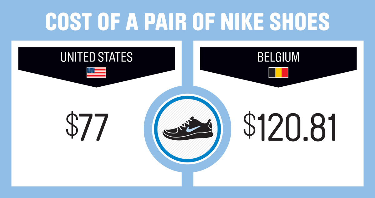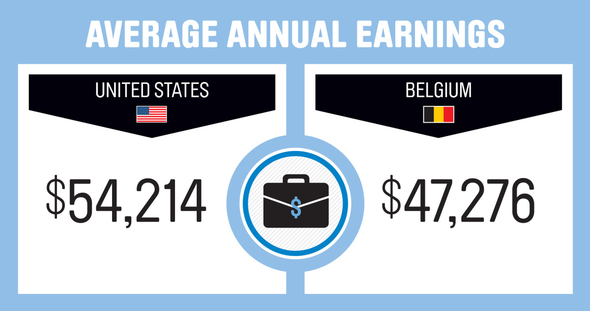 Δείτε για παράδειγμα πόσο κοστίζει η μπύρα και η βενζίνη σε ΗΠΑ και Βέλγιο, πόσες ώρες την εβδομάδα εργάζονται οι πολίτες και ποιο είναι το μέσο ετήσιο εισόδημα, αλλά και πόσα κερδίζει ο πιο ακριβοπληρωμένος ποδοσφαιριστής των δύο χωρών.