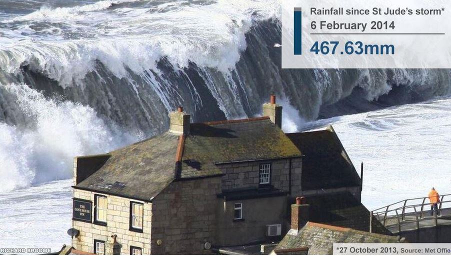 Με αμείωτη ένταση συνεχίζεται η κακοκαιρία στην Μεγάλη Βρετανία. Οι έντονες βροχοπτώσεις έχουν προκαλέσει υπερχείλιση των υδάτων ενώ τα κύματα στις βορειοδυτικές ακτές αγγίζουν τα 8 μέτρα.