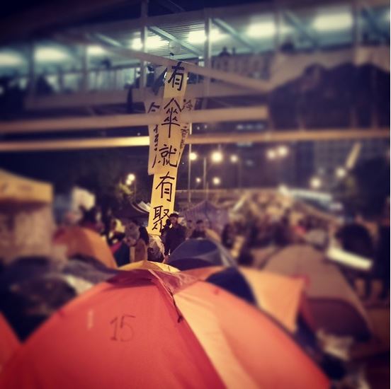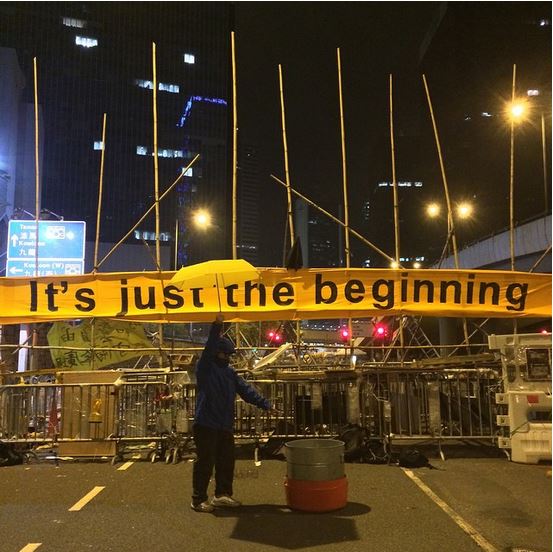 Ένα μεγάλο κίτρινο πανό το οποίο έφερε μια ομπρέλα και τις λέξεις «Θα επιστρέψουμε» είχε τοποθετηθεί στο κέντρο της εθνικής οδού όπου οι φοιτητές είχαν στρατοπεδεύσει. Σε άλλο σημείο οι διαδηλωτές είχαν αναρτήσει ένα ακόμα πανό στο οποίο αναγραφόταν «Είναι μόνο η αρχή».