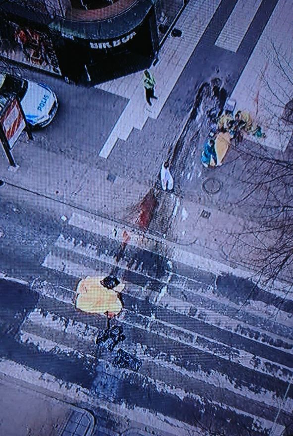 Μια φωτογραφία που σοκάρει από την Στοκχόλμη κάνει τον γύρο του διαδικτύου. Στη φωτογραφία που πολύ πιθανόν να προέρχεται από κλειστό κύκλωμα παρακολούθησης φαίνονται αίματα στο δρόμο. Ενώ πολύ πιθανόν κάτω από τα κίτρινα αδιάβροχα να υπάρχουν οι σοροί των νεκρών, χωρίς ωστόσο αυτό να επιβεβαιώνεται μέχρι αυτή τη στιγμή από τα ΜΜΕ.