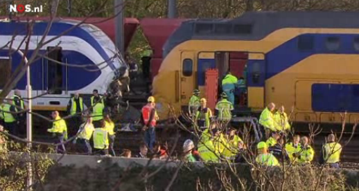 Τουλάχιστον 90 άνθρωποι τραυματίστηκαν, όταν δύο τρένα συγκρούστηκαν το Σάββατο κοντά στο Άμστερνταμ, όπως μεταδίδουν τα ξένα ειδησεογραφικά πρακτορεία, επικαλούμενα εκπροσώπους των ολλανδικών σιδηροδρόμων αλλά και της αστυνομίας. Συγκεκριμένα, το ατύχημα συνέβη στο ύψος του Westerpark στις 18.30 τοπική ώρα. Σύμφωνα με πληροφορίες, αν και εξωτερικά των τρένων δεν υπάρχουν μεγάλες εμφανείς ζημιές, λόγω της μεγάλης ταχύτητας, κατά τη διάρκεια της σύγκρουσης οι επιβάτες «χτυπούσαν» σε διάφορα σημεία μέσα στα βαγόνια.