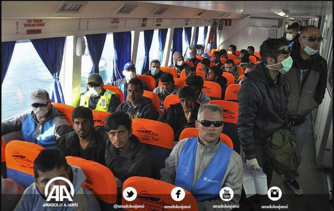 Η στιγμή που μετανάστες μεταφέρονται με τη συνοδεία αστυνομικών της Frontex στην Τουρκία. Η διαδικασία επαναπροώθησης έχει ξεκινήσει από το πρωί και βρίσκεται σε εξέλιξη.