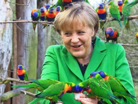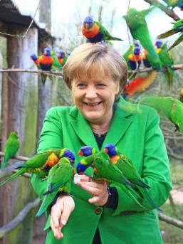 Πουλιά στον αέρα πιάνει η καγκελάριος, Άνγκελα Μέρκελ όπως φαίνεται και από την εικόνα. Η κ.Μέρκελ επισκέφθηκε, χθες, Τρίτη το πάρκο πουλιών Μάρλοου.Κατά την επίσκεψη της η καγκελάριος, επέλεξε να φορέσει ένα καταπράσινο σακάκι, χρώμα που προκαλεί εντύπωση στους παπαγάλους και τους προσελκύει, σύμφωνα με τη Bild. Δείτε τις φωτογραφίες: