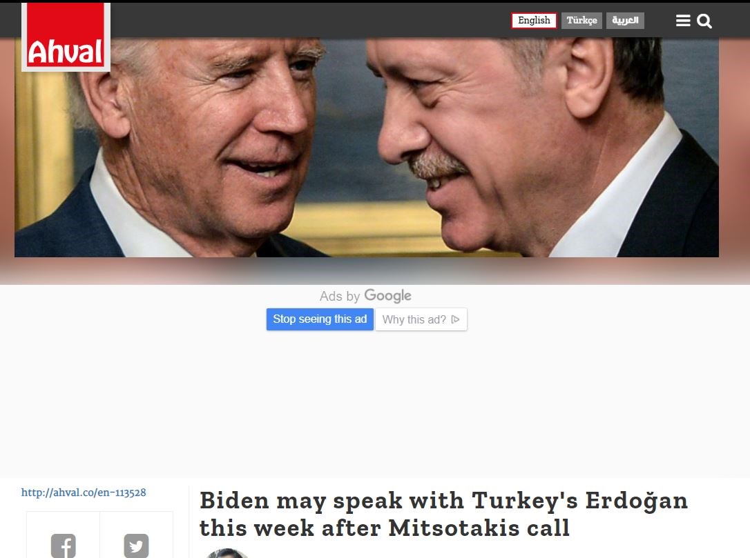 Κρίσιμη είναι η προσεχής εβδομάδα στις σχέσεις ανάμεσα σε ΗΠΑ-Τουρκία, καθώς σύμφωνα με την ιστοσελίδα, Ahval News, υπάρχει πιθανότητα τηλεπικοινωνίας Μπάιντεν-Ερντογάν μόλις λίγες μέρες μετά την επαφή που είχε ο Αμερικανός Πρόεδρος με τον Κυριάκο Μητσοτάκη ανήμερα της 25ης Μαρτίου. Όπως αναφέρει η ιστοσελίδα, «εδώ και δεκαετίες, υπάρχει μια διπλωματική παράδοση που θέλει το νέο πρόεδρο των ΗΠΑ να μιλά σχεδόν ταυτόχρονα με Τουρκία και Ελλάδα… Εάν ο Μπάιντεν και ο Ερντογάν μιλήσουν στην αυτή την εβδομάδα, υπάρχουν πολλά ζητήματα για τα οποία έχουν ήδη μιλήσει μέσω των αντιπροσώπων τους».