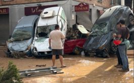 Στο Αλφαφάρ, προάστιο της Βαλένθια, της τρίτης μεγαλύτερης πόλης της Ισπανίας, διασώστες σκαρφάλωναν πάνω από τα αυτοκίνητα που είχαν στοιβαχτεί στους στενούς δρόμους ενώ οι κάτοικοι, που έσερναν καρότσια σούπερ μάρκετ μέσα στις λάσπες, περνούσαν δίπλα από ένα σκάφος που παρασύρθηκε από τα νερά και κατέληξε σε ένα σταυροδρόμι.