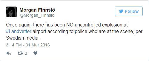 Σύμφωνα με τις τελευταίες πληροφορίες που μεταδίδουν τα διεθνή ΜΜΕ έγινε ελεγχόμενη έκρηξη στο σημείο που βρέθηκαν τα δύο ύποπτα αντικείμενα στο αεροδρόμιο του Γκέτεμποργκ στη Σουηδία.