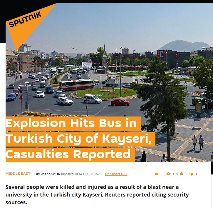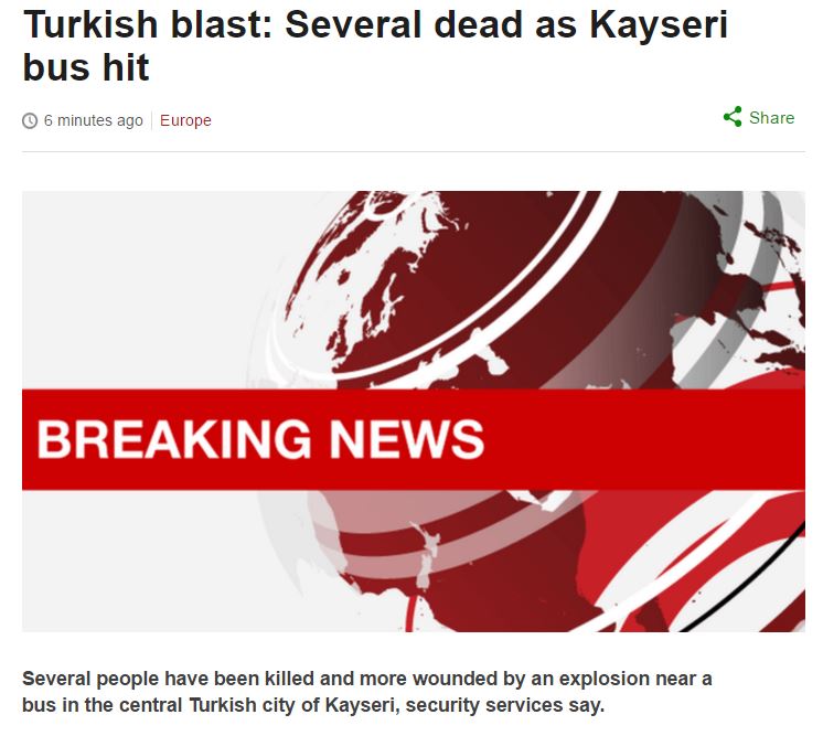 Υπάρχουν πληροφορίες για νεκρούς από την ισχυρή έκρηξη που σημειώθηκε σε λεωφορείο κοντά στο Πανεπιστήμιο Erciyes στην πόλη Καισάρεια της Τουρκίας.