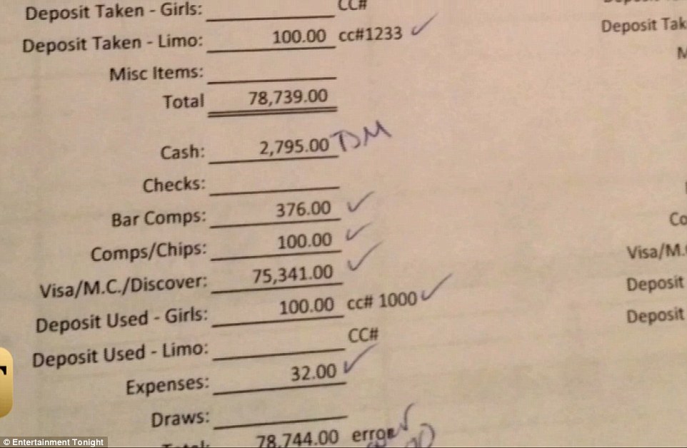 Στο φως της δημοσιότητας βγήκε η απόδειξη από τον λογαριασμό του 35χρονου Λαμάρ Όντομ κατά την 4ήμερη παραμονή του στον οίκο ανοχής.