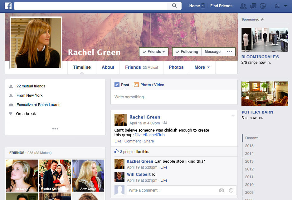 Το Facebook της Ρέιτσελ