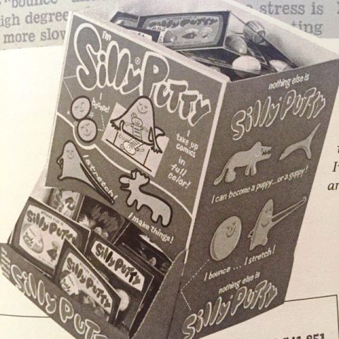 Το υλικό αναπήδησε. Η εταιρεία έστειλε δείγματα του νέου υλικού σε επιστήμονες σε όλο τον κόσμο για να δει αν μπορούσαν να βρουν κάποια χρήση για αυτό. Κανείς δεν τα κατάφερε παρότι διασκέδαζαν πραγματικά να παίζουν μαζί του. Το νέο υλικό εγκαταλείφθηκε ως αποτυχία. Το 1950 ο Πίτερ Χότζσον, ένας σύμβουλος μάρκετινγκ στο Κονέκτικατ, κατάφερε να βρει λίγο από το υλικό από κάποιον φίλο του χημικό και κατάλαβε ότι επρόκειτο για χρυσωρυχείο. Ήξερε αμέσως ότι αυτό που οι επιστήμονες θεωρούσαν άχρηστο, τα παιδιά θα το λάτρευαν. Τοποθέτησε το υλικό σε συσκευασίες πλαστικών αυγών και του έδωσε το όνομα που είναι γνωστό σήμερα. Η πλαστελίνη Silly Putty….