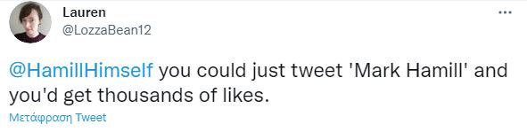 Ένας από τους fan του Mark Hamill, έγραψε στο twitter ότι αν κάνει ένα tweet, το οποίο θα περιέχει μόνο το ονοματεπώνυμό του, τότε θα συγκέντρωνε εκατοντάδες χιλιάδες likes.
