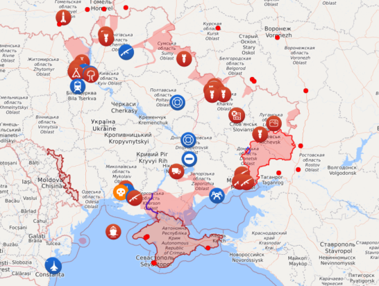 Ένας διαδραστικός χάρτης αποτυπώνει λεπτό προς λεπτό τις περιοχές στην Ουκρανία όπου γίνονται μάχες μεταξύ ρωσικών και ουκρανικών στρατευμάτων και τα σημεία που γίνονται βομβαρδισμοί.
