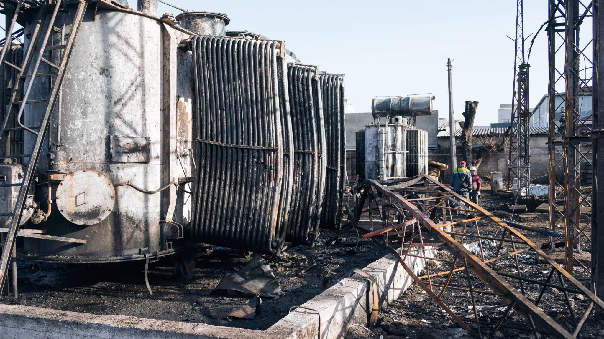 A damaged high-voltage substation is seen after Russian air attacks on the energy sector in Odesa region, Ukraine, Tuesday, Jan. 6, 2026. (AP Photo/Nikoletta Stoyanova)