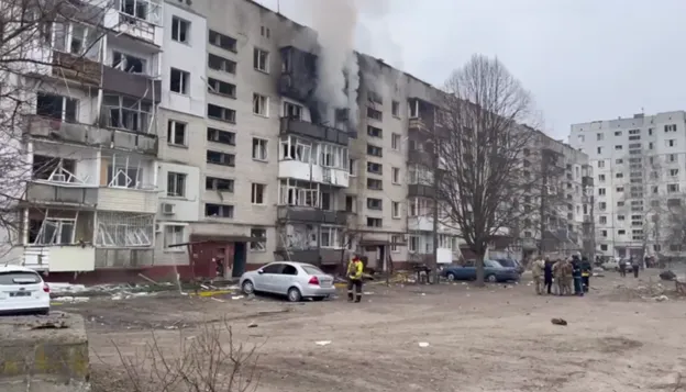 Άλλα βίντεο που δημοσίευσε η διοίκηση της ουκρανικής περιφέρειας δείχνουν κατεστραμμένα κτίρια και καπνό να βγαίνει από διαμερίσματα.
