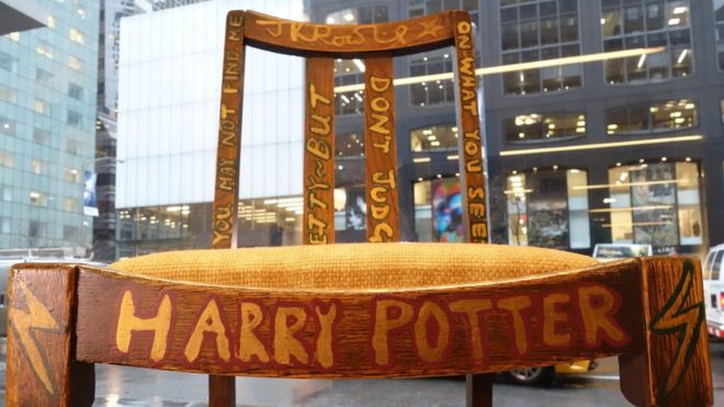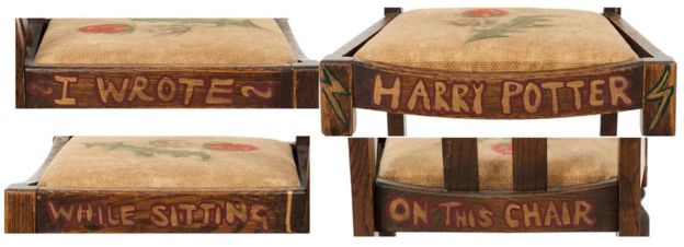 Η καρέκλα στην οποία καθόταν η Τζοάν Ρόουλινγκ κατά τη διάρκεια της συγγραφής των δύο πρώτων βιβλίων του Χάρι Πότερ πωλήθηκε σε δημοπρασία στη Νέα Υόρκη για 352.000 ευρώ.