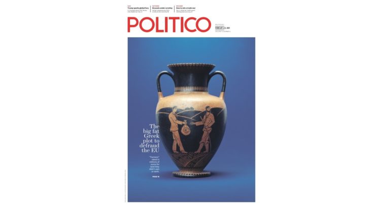 Με τίτλο «Η μεγάλη χοντρή συνωμοσία για εξαπάτηση της Ευρωπαϊκής Ένωσης», η έντυπη έκδοση της εφημερίδας Politico γράφει «αγρότες απέσπασαν εκατομμύρια ευρώ για γη που δεν τους ανήκε ή δεν την δούλευαν».