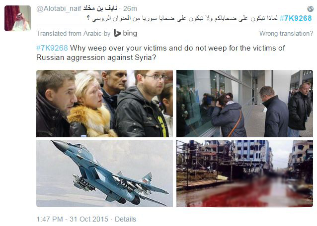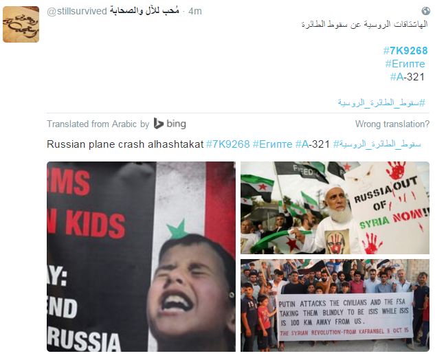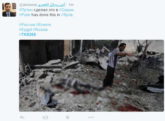 Λογαριασμοί ισλαμιστών ποστάρουν σοκαριστικές φωτογραφίες από τα θύματα των ρωσικών βομβαρδισμών στη Συρία, στο όνομα του πολέμου κατά της τρομοκρατίας και του Ισλαμικού Κράτους και καταφέρονται ενάντια στον Βλαντιμίρ Πούτιν.