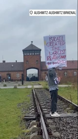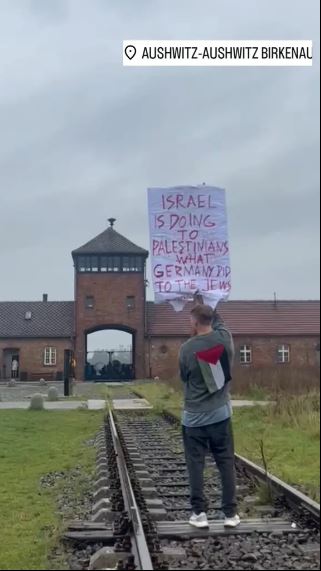Ο Igor Dobrowolski δημοσίευσε ένα βίντεο με τον εαυτό του να στέκεται έξω από το Άουσβιτς με μια πινακίδα σε κόκκινο χρώμα που έγραφε: Το Ισραήλ δημιούργησε το μεγαλύτερο στρατόπεδο θανάτου στην ιστορία».