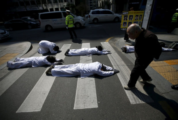 Με το κεφάλι τους ξυρισμένο και φορώντας λευκά ρούχα του πένθους, γονείς επιβατών που έχασαν τη ζωή τους στο ναυάγιο ενός νοτιοκορεατικού οχηματαγωγού τον Απρίλιο του 2014 άρχισαν σήμερα μια μεγάλη πορεία ζητώντας να διεξαχθεί ανεξάρτητη έρευνα. Καθώς πλησιάζει η πρώτη επέτειος της τραγωδίας, περισσότεροι από 200 άνθρωποι, οι περισσότεροι γονείς μαθητών, συμμετέχουν στην πορεία αυτή των 35 χιλιομέτρων από την πόλη Ανσάν μέχρι την πρωτεύουσα Σεούλ.