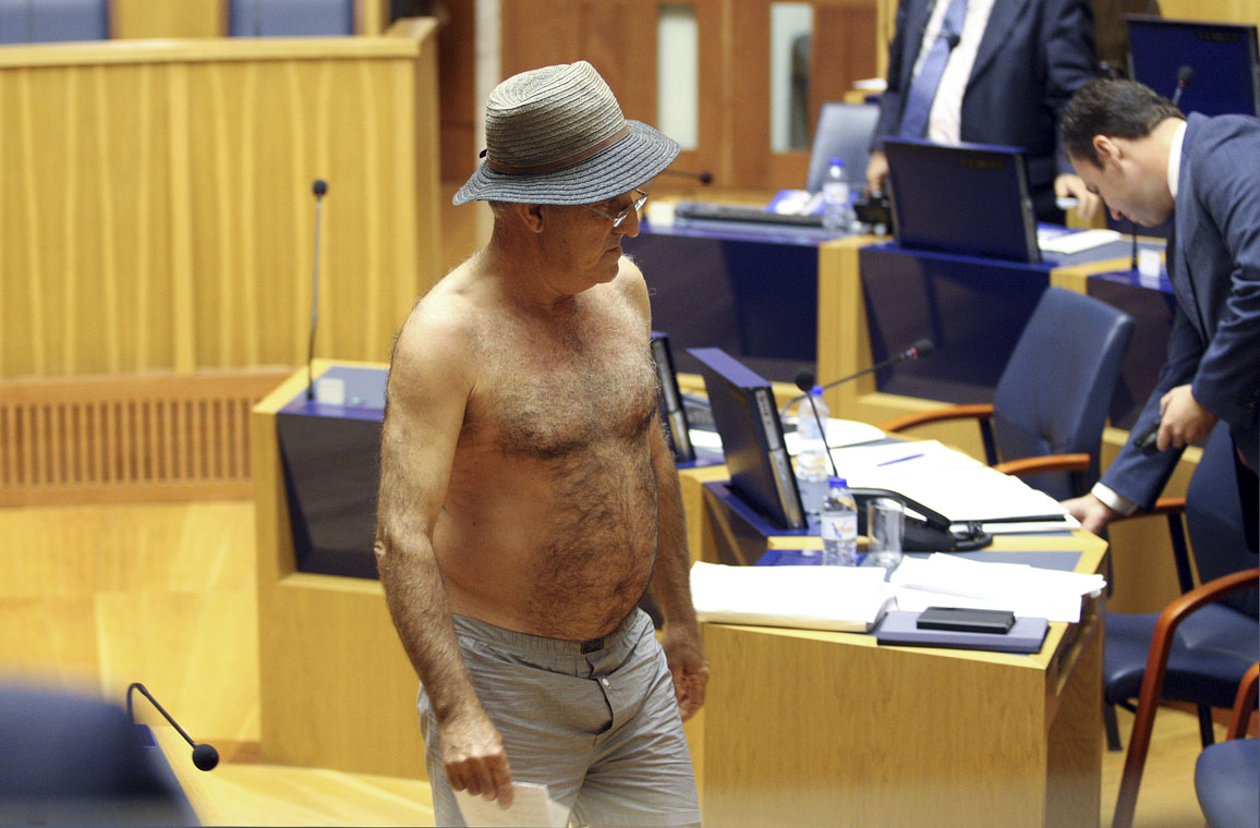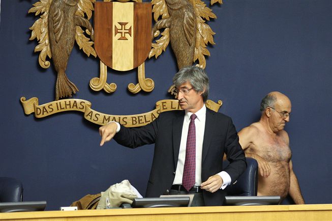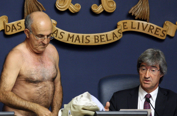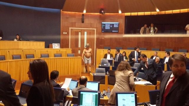 Ο βουλευτής του Εργατικού Κόμματος της Πορτογαλίας (PTP), Jose Manuel Coelho, βγήκε στην κυριολεξία έξω από τα ρούχα, ενώ βρισκόταν στο Κοινοβούλιο, σε ένδειξη διαμαρτυρίας για την περικοπή του μισθού του.