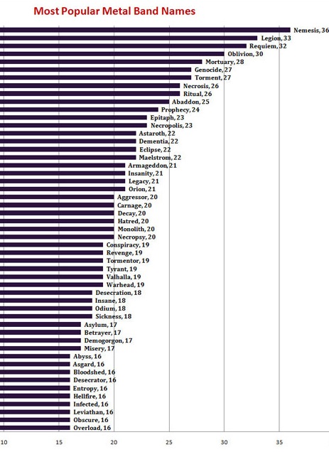 Αυτό ακριβώς το καταδεικνύεται από έρευνα που κυκλοφόρησε πρόσφατα στο Reddit, και περιλαμβάνει τα 50 δημοφιλέστερα ονόματα metal συγκροτημάτων.