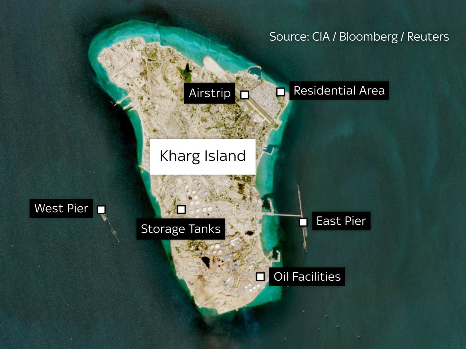 Το νησί Χαργκ φιλοξενεί τον κυριότερο τερματικό σταθμό πετρελαίου και αποτελεί την «οικονομική σανίδα σωτηρίας» της χώρας. Σύμφωνα με τον Αμερικανό πρόεδρο, οι στρατιωτικές εγκαταστάσεις του νησιού «ισοπεδώθηκαν πλήρως», ωστόσο διευκρίνισε ότι οι ΗΠΑ απέφυγαν προς το παρόν να στοχεύσουν τις πετρελαϊκές υποδομές.
