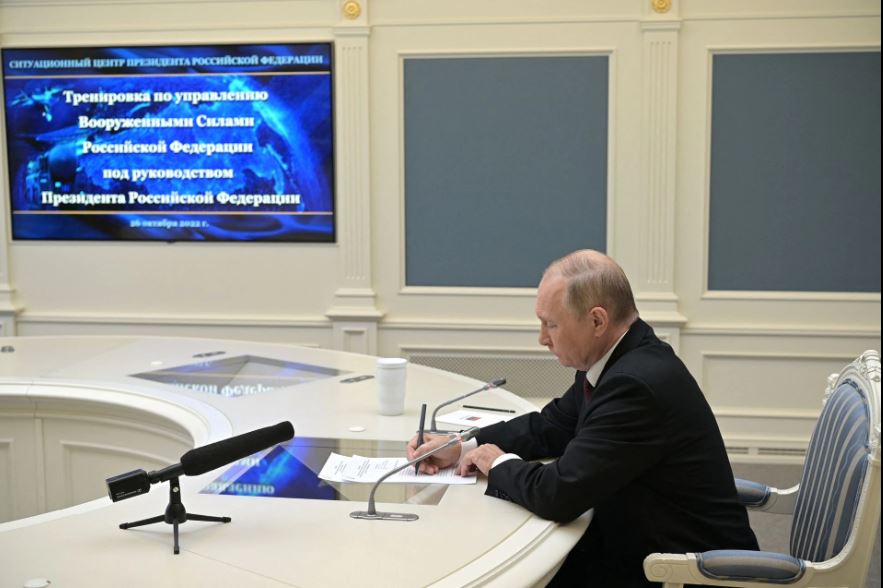 Ο πρόεδρος Πούτιν μπήκε στον χορό των ρωσικών ισχυρισμών ότι το Κίεβο σχεδιάζει να χρησιμοποιήσει βρώμικη βόμβα στον πόλεμο, και μάλιστα σήμερα παρακολούθησε τα γυμνάσια των πυρηνικών δυνάμεων της χώρας του, σε μια κίνηση που εμφανώς καταδεικνύει την πρόθεση της Μόσχας να εμείνει στην επιλογή της πυρηνικής απειλής.