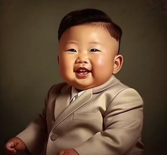 Έτσι ο ηγέτης της Βόρειας Κορέας, Κιμ Γιονγκ Ουν ως μωρό φαίνεται με το ίδιο κούρεμα και ένα μπεζ κουστούμι.