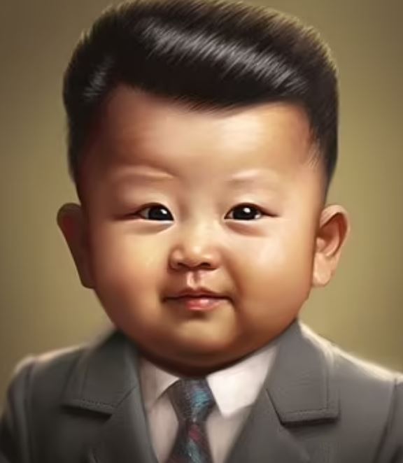 Εντυπωσιακός ως μωρό είναι και ο πρόεδρος της Κίνας, Σι Τζινπίνγκ που φοράει γκρι κοστούμι με γραβάτα.