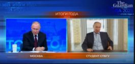 Ο Βλαντίμιρ Πούτιν φάνηκε να ταπεινώνεται σήμερα κατά τη διάρκεια της ετήσιας συνέντευξης Τύπου που παραχωρεί στο τέλος του έτους, όταν σε οθόνες εμφανίστηκαν μηνύματα που του έλεγαν να παραιτηθεί, ενώ άλλοι αμφισβήτησαν την “πραγματικότητα” όπως την αντιλαμβάνεται ο Πούτιν τη Ρωσία. Πιστός στο έθιμο που θέλει αυτή την τελευταία συνέντευξη να είναι μάλλον σόου, ο Πούτιν αγνόησε τις ερωτήσεις που δεν τον βόλευαν και μίλησε με τον… εαυτό του.