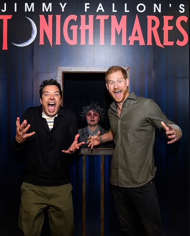 Prince Harry joins Jimmy on a trip through Tonightmares, an all-new haunted maze experience in NYC! 👻 🐼 #FallonTonight #Tonightmares pic.twitter.com/0EKGDMLiz5