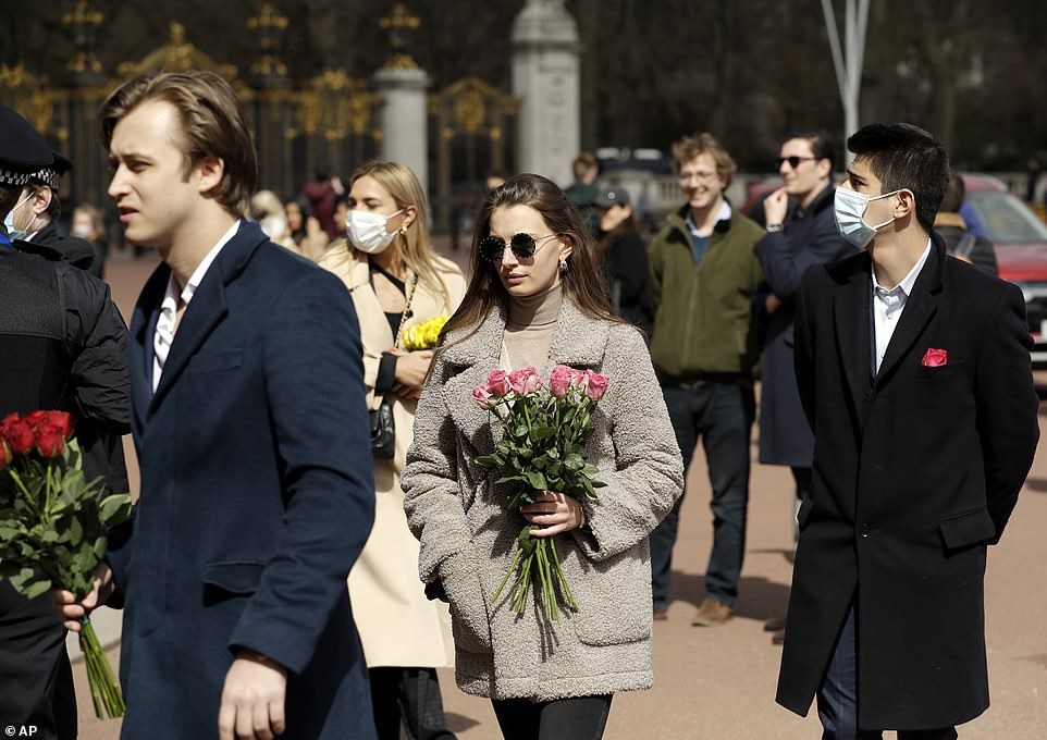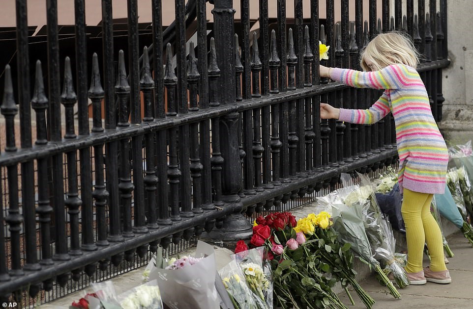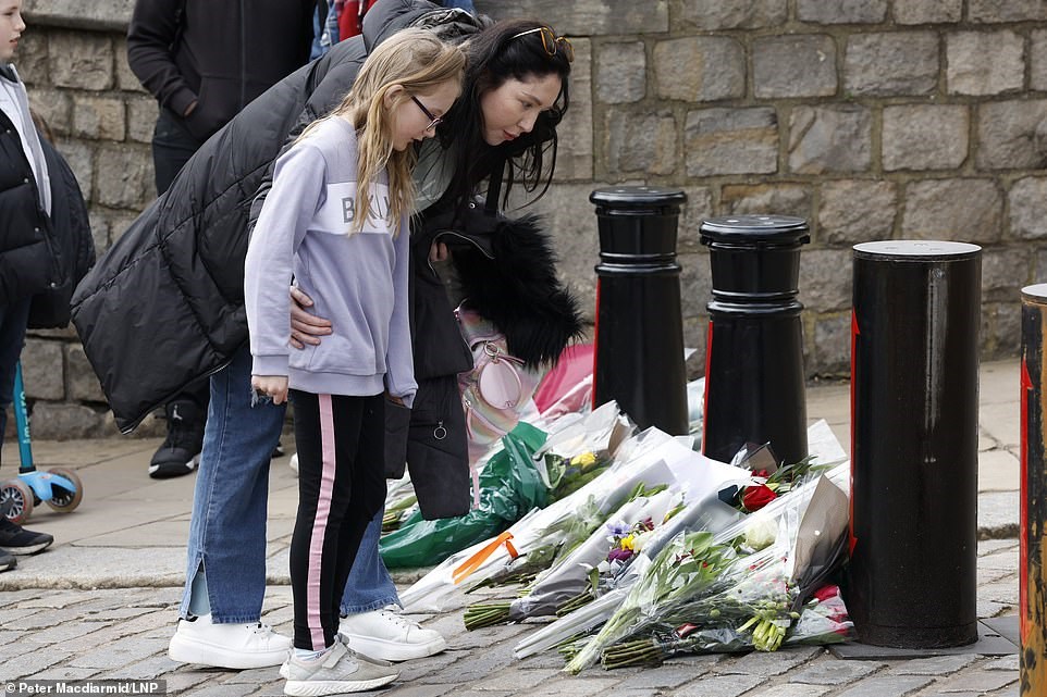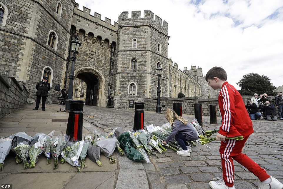 Άνθρωποι όλων των ηλικιών από μικρά παιδιά έως και ηλικιωμένους φθάνουν στα Ανάκτορα του Μπάκιγχαμ, ή στο Κάστρο του Ουίνδσορ και αφήνουν λουλούδια.