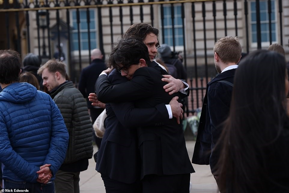 Αγκαλιάζονται συντετριμμένοι, κλαίνε, εκφράζουν τον σεβασμό τους με κάθε τρόπο. Οι εικόνες πράγματι συγκινούν και συγκλονίζουν και κυρίως αποτυπώνουν το στίγμα του Δούκα του Εδιμβούργου στον βρετανικό λαό.