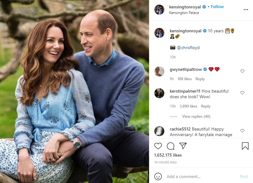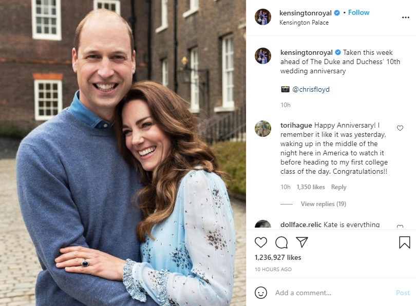 Μπορεί να είναι η δέκατη επέτειος τους, αλλά είναι πιθανό ότι το ζευγάρι θα συνεχίσει με το καθημερινό του πρόγραμμα χωρίς αλλαγές, μεταφέροντας τα παιδιά τους στο σχολείο. Οι βοηθοί του Παλατιού αναφέρουν ότι επιμένουν να έχουν ως προτεραιότητα τον πρίγκιπα Τζορτζ, την πριγκίπισσα Σαρλότ και τον πρίγκιπας Λούι.