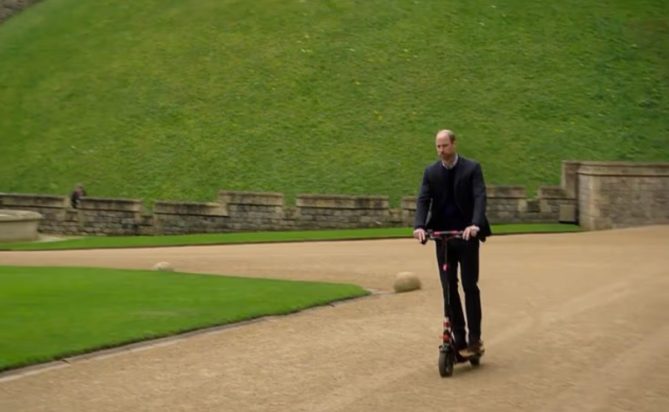 Ένα βίντεο του πρίγκιπα Ουίλιαμ, στην Βρετανία, να οδηγεί ένα ηλεκτρικό πατίνι στους χώρους του κάστρου του Ουίνδσορ έχει ενθουσιάσει τους φανατικούς φίλους του βασιλικού Οίκου.