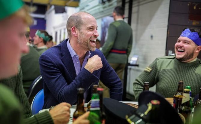 Μετά το γεύμα, ο Ουίλιαμ – ο οποίος έχει το χαϊδευτικό παρατσούκλι «One Pint Willy» (Ο Ουίλι της Μπύρας) από τον σύζυγο της ξαδέλφης του Ζάρα, Μάικ Τίνταλ, επειδή «δεν είναι και ο καλύτερος πότης» – έμεινε πίσω για να απολαύσει μια μπύρα με τους στρατιώτες των οποίων είναι διοικητής.