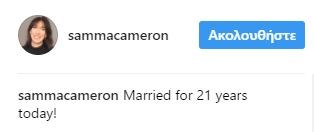 Τα 21 χρόνια γάμου γιορτάζει το πρώην πρωθυπουργικό ζευγάρι της Βρετανίας και αποφάσισε να μοιραστεί με τους ακόλουθούς του στο Instagram μια προσωπική του στιγμή.