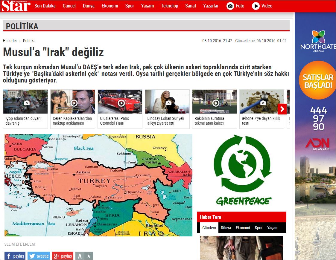 Προκλητικό δημοσίευμα φιλοξενείται σήμερα στην τουρκική εφημερίδα, Star, σχετικά με τα σύνορα που θα είχε η Τουρκία εάν δεν ίσχυε η Συνθήκη της Λωζάννης.