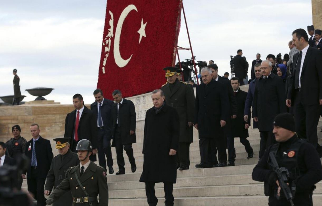 Ο Ερντογάν, βέβαια, δεν παρέλειψε να αναφερθεί και στις συνεχιζόμενες επιχειρήσεις κατά του PKK στη νοτιοανατολική Τουρκία, επιχείρησε να παραλληλίσει τις ενέργειες του Κεμάλ για την ίδρυση του σύγχρονου τουρκικού κράτους με τον τρόπο που αντιμετωπίστηκε η απόπειρα πραξικοπήματος, τον περασμένο Ιούλιο και διαβεβαίωσε ότι «η Τουρκία δεν έχει βλέψεις στα εδάφη κανενός».