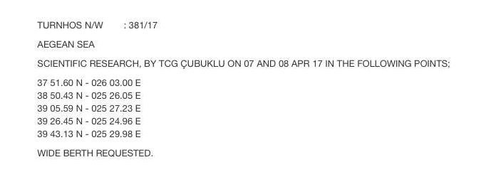 Σε νέα πρόκληση προχωρούν οι Τούρκοι στο Αιγαίο.Συγκεκριμένα, η γείτονα εξέδωσε NAVTEX μέσω της οποίας γνωστοποιεί ότι βγάζουν αύριο Παρασκευή στο Αιγαίο το ωκεανογραφικό Cubuklu, το οποίο, όπως αναφέρουν θα πραγματοποιήσει επιστημονικές έρευνες.Ακολουθούν οι χάρτες, στις οποίες θα πλεύσει το εν λόγω πλοίο: