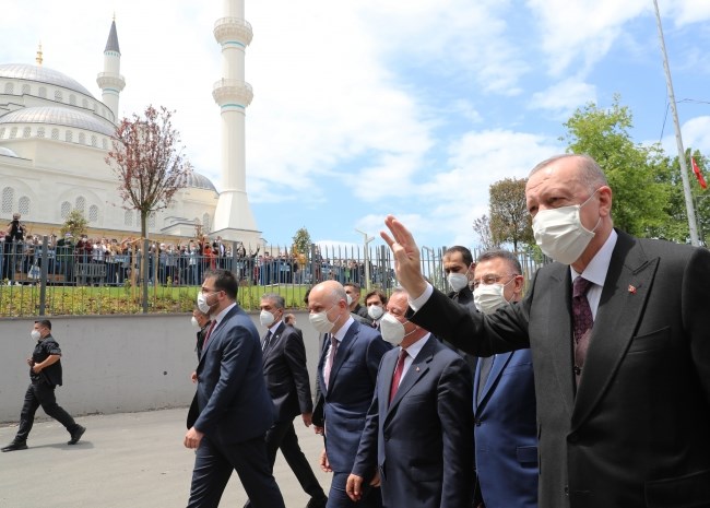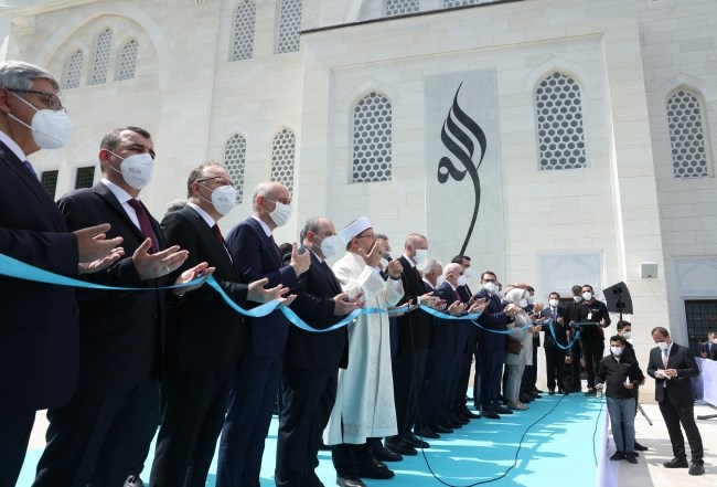 Ο Τούρκος πρόεδρος, αφού εξέφρασε τις ευχαριστίες του στους ανθρώπους που συνέβαλαν για την κατασκευή του τζαμιού τόνισε μεταξύ άλλων πως “πιστεύω πως κάθε τζαμί το οποίο χτίζουμε στις πόλεις μας, είναι ένας πνευματικός φρουρός που χτίστηκε στα εδάφη μας για να προστατεύει το μέλλον του λαού μας και της πατρίδας μας” ενώ ακολούθως απήγγειλε ένα ποίημα του εθνικιστή ποιητή Ζιγιά Γκιοκάλπ, το οποίο ήταν η αιτία που είχε φυλακιστεί το 1998 κατηγορούμενος για υποκίνηση θρησκευτικού μίσους: “Oι μιναρέδες είναι οι ξιφολόγχες μας, οι θόλοι είναι τα κράνη μας, τα τζαμιά οι στρατώνες μας, και οι πιστοί είναι οι στρατιώτες μας. Αυτόν τον στρατό περιμένει η θρησκεία μου”.