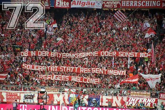 Ενώσεις φιλάθλων αναρτούν πανό που γράφουν «Πρόσφυγες Καλοδεχούμενοι» στις κερκίδες γηπέδων στο πρωτάθλημα ποδοσφαίρου στη Γερμανία.