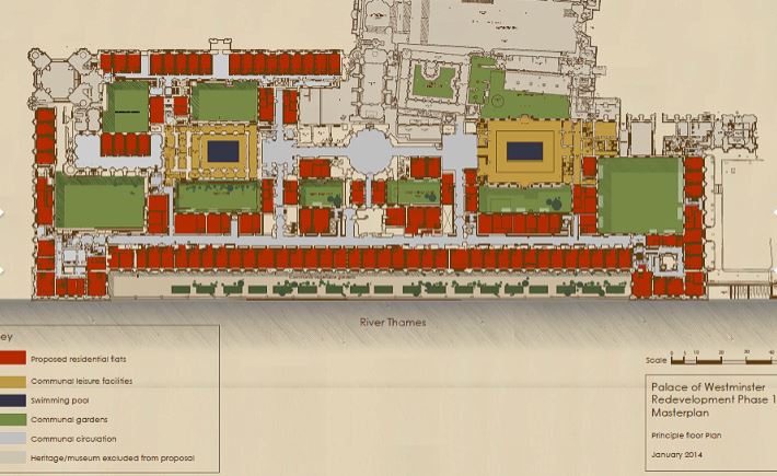 Σύμφωνα με την μελέτη αυτής της ομάδας, η Βουλή των Λόρδων θα μπορούσε να μετατραπεί σε ένα κτιριακό συγκρότημα 364 διαμερισμάτων, διαφόρων τετραγωνικών, με προνομιακά γραφεία που θα βλέπουν στον Τάμεση ποταμό.