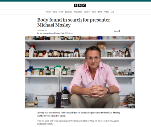 Την είδηση του εντοπισμού του 67χρονου μετέδωσε πρώτο στο εξωτερικό το BBC, στο οποίο ο 67χρονος βρετανός ήταν τακτικός συνεργάτης στην πρωινής ζώνη του ITV “This Morning” αλλά και σε άλλες εκπομπές του καναλιού.