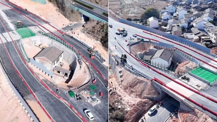 Η στέγη του διώροφου σπιτιού του Χουάνγκ, που βρίσκεται στην πόλη Τζίνξι της Κίνας, είναι τώρα σχεδόν στο ίδιο επίπεδο με τον αυτοκινητόδρομο που βρίσκεται υπό κατασκευή.