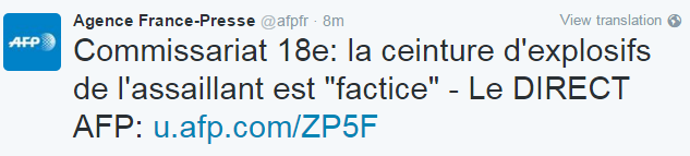 Η ζώνη με τα εκρηκτικά που φορούσε ο άντρας που επιτέθηκε στο αστυνομικό τμήμα στο Παρίσι ήταν ψεύτικη, όπως αναφέρουν αστυνομικές πηγές στο Γαλλικό Πρακτορείο Ειδήσεων.
