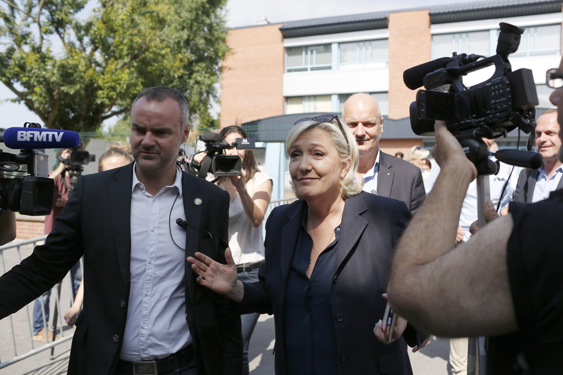 Η Λεπέν συνοδευόταν από τον Στιβ Μπριουά, τον δήμαρχο της πόλης αυτής, η οποία αριθμεί περίπου 26.000 κατοίκους και αποτελεί ένα από τα προπύργια του ακροδεξιού κόμματος. Ο Μπριουά προέρχεται από το Εθνικό Μέτωπο. Η Λεπέν δεν έκανε καμία δήλωση στους περίπου 20 δημοσιογράφους που την περίμεναν σε σχολείο, το οποίο είχε μετατραπεί σε εκλογικό κέντρο.