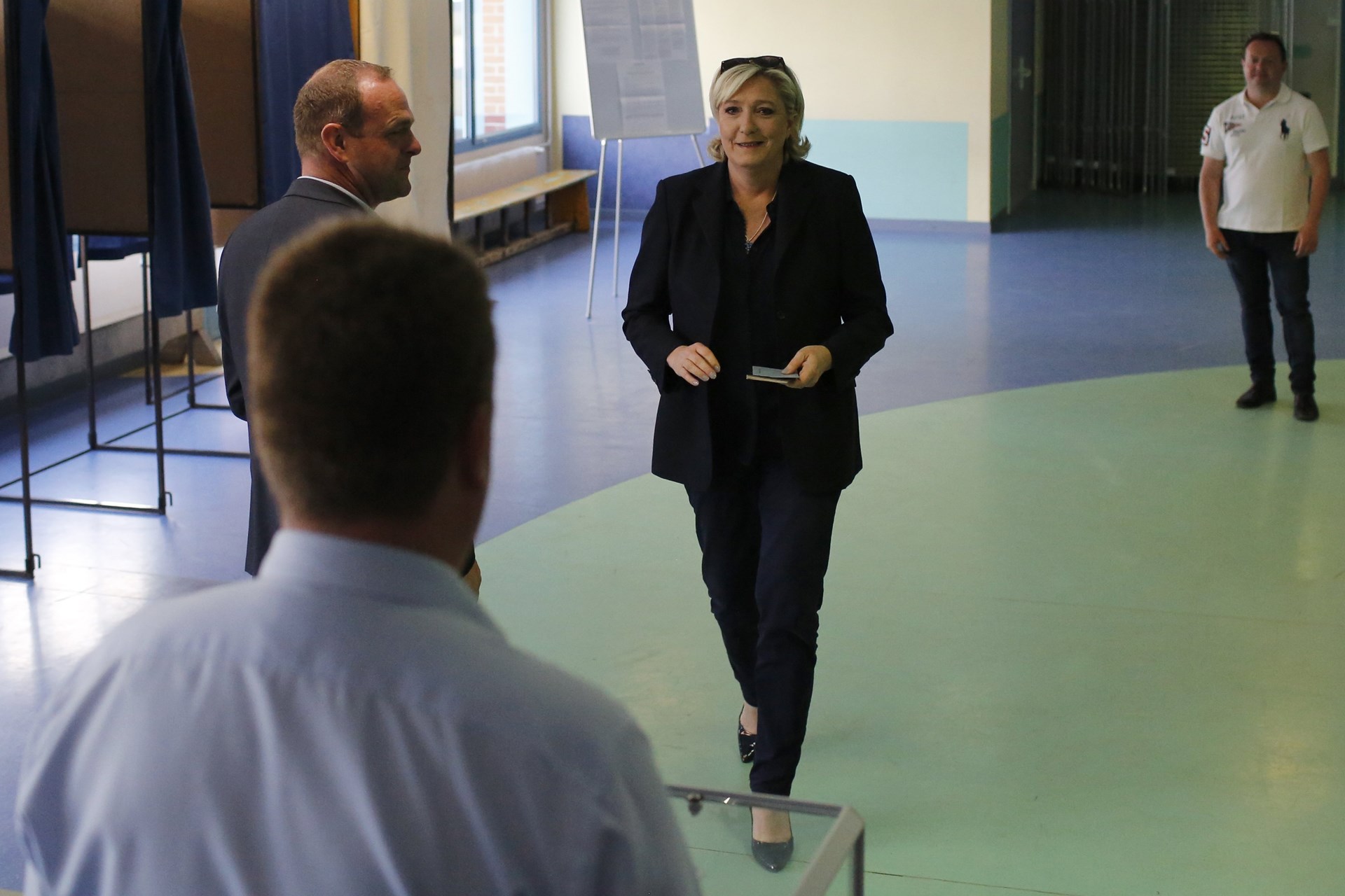 Η πρόεδρος του ακροδεξιού Εθνικού Μετώπου Μαρίν Λεπέν, η οποία είναι υποψήφια στις βουλευτικές εκλογές, στην 11η περιφέρεια του Πα-ντε-Καλέ, ψήφισε πριν από λίγο, στο Ενέν-Μπομόν, όπως μετέδωσε δημοσιογράφος του AFP.