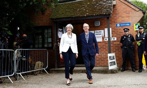 Η Πρωθυπουργός της Βρετανίας Τερέζα Μέι μαζί με τον σύζυγό της Φίλιπ έφτασαν πριν από λίγο στο εκλογικό κέντρο στο Sonning του Berkshire προκειμένου να ψηφίσουν.